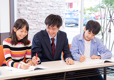 教師1×生徒2の個別指導で、「わかるまで」「できるまで」丁寧に指導します。担任制での指導のため、生徒の学習状況や性格を把握した教師が、一人ひとりに合った学習法を指導し、目標達成をサポートします。