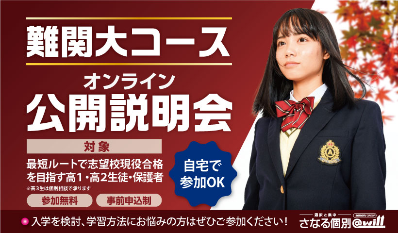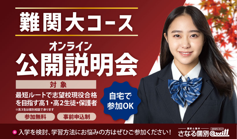 さなる個別@will 難関大コースへの入学をご検討されている方を対象に、オンライン公開説明会を開催します。