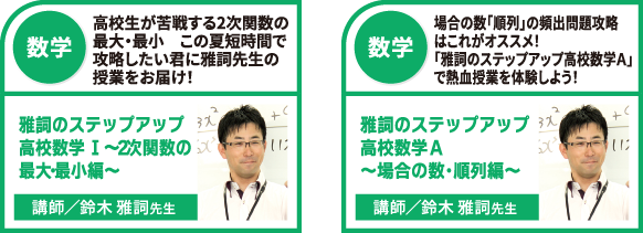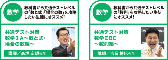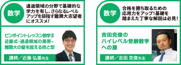 本講座では、名大入試頻出の分野から学習効果の高い良問を厳選収録。問題演習を通じて高い処理能力や問題分析力などを養い、名大合格に向けた知的体力を身につけていきます。