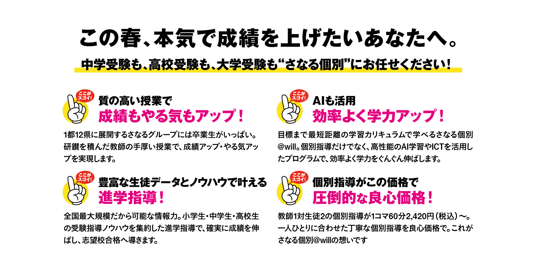 さなる個別ならではの「指導ノウハウ」で、学力アップを目指します。