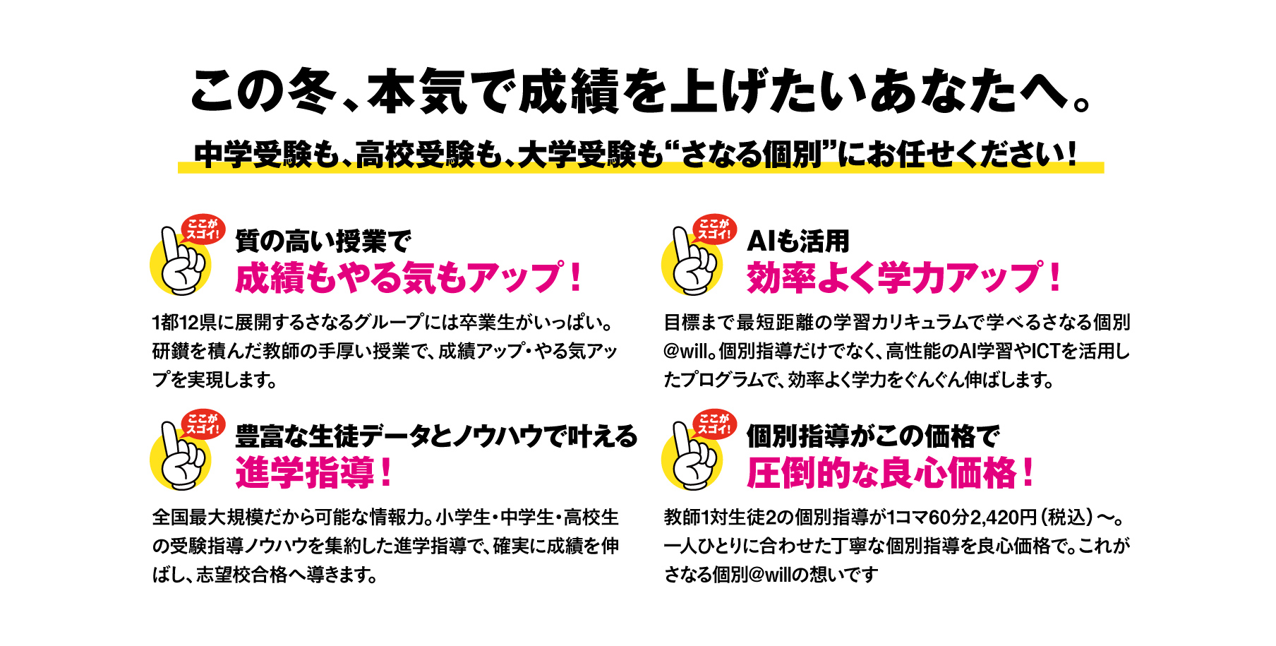 さなる個別ならではの「指導ノウハウ」で、学力アップを目指します。