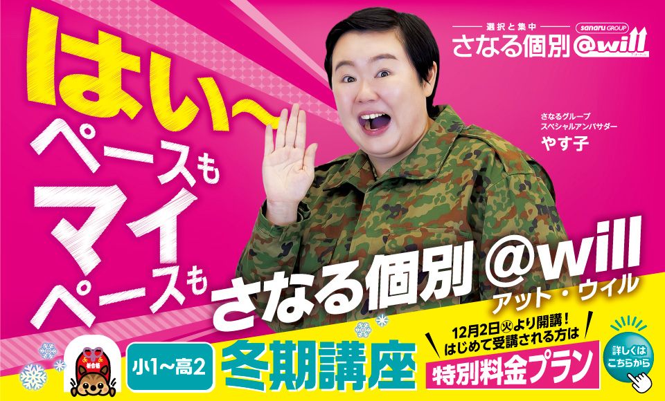 さなる個別@will は、お子さん一人ひとりにピッタリの指導がしたい! という想いから