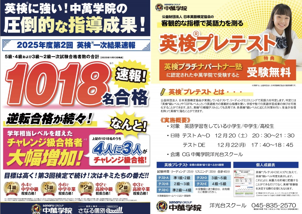 多くの学校で、英検の取得級に応じて入試での優遇措置(内申点加算、得点換算、出願資格など)が受けられます。志望校合格への切符を、自分自身の手で手に入れることができます。
