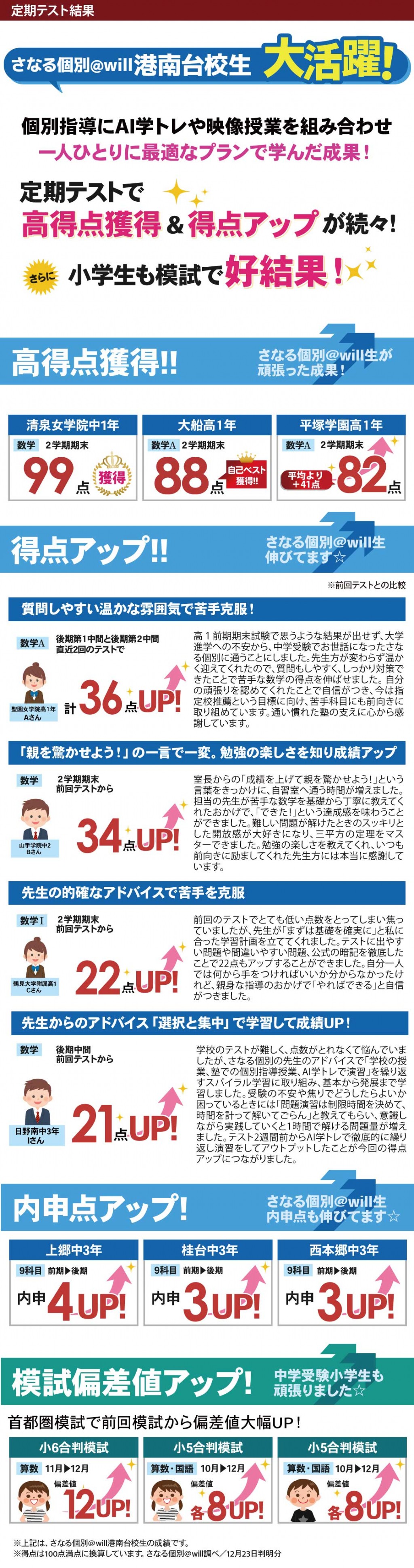さなる個別@will港南台校の個別指導で成績アップを実現しよう