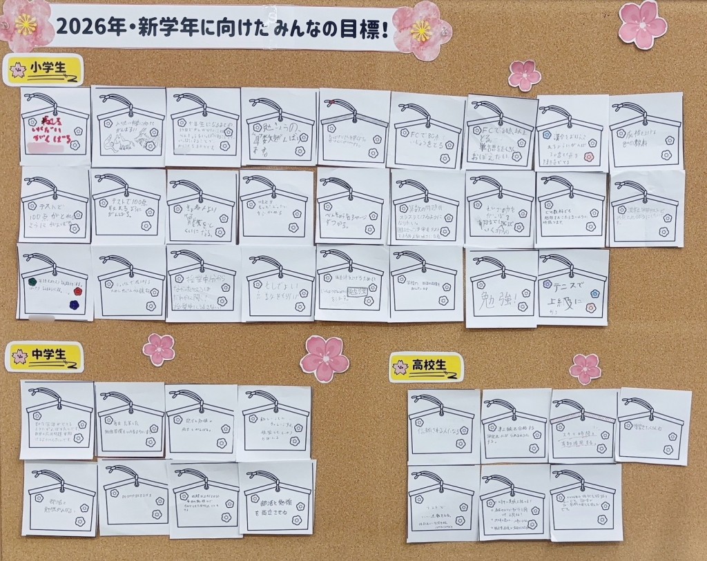 2026年が始まり、教室では生徒たちが今年の目標・新学年に向けた目標を掲げてくれました。その一部をご紹介します。